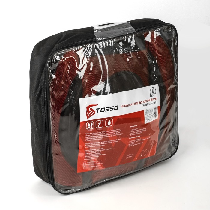 Авточехлы TORSO, поясничная опора, боковая поддержка, набор 10 предметов, красные