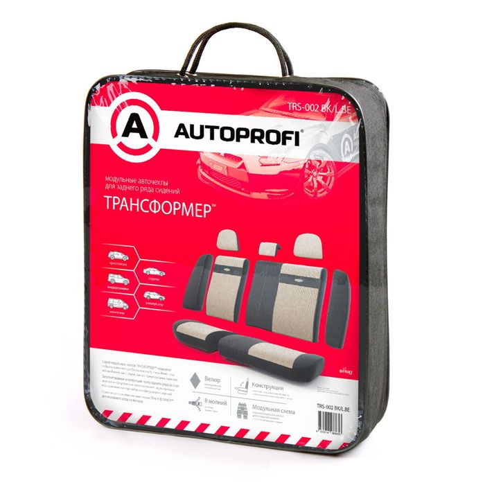 Авточехлы универcальные AUTOPROFI Трансформеры, TRS-002 BK/L.BE, велюр, набор из 11 предметов, задний ряд, цвет чёрный/светло-бежевый