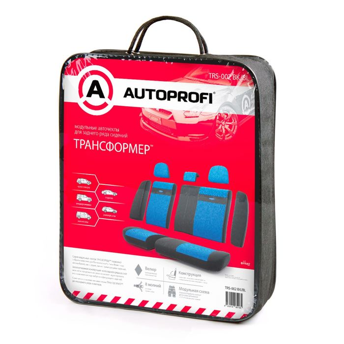Авточехлы универcальные AUTOPROFI Трансформеры, TRS-002G BK/BL, экокожа, набор из 11 предметов, задний ряд, цвет чёрный/синий