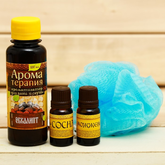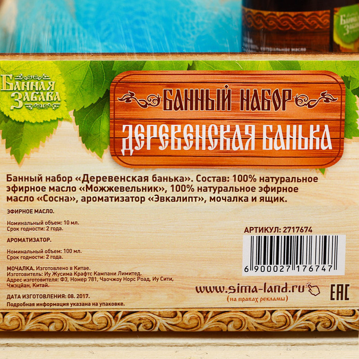 Банный набор в ящике "Деревенская банька": 2 аромамасла, ароматизатор, мочалка