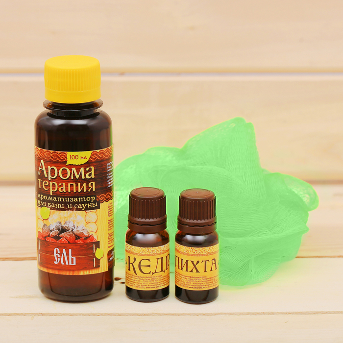Банный набор в ящике "Жаркая банька": 2 аромамасла, ароматизатор, мочалка