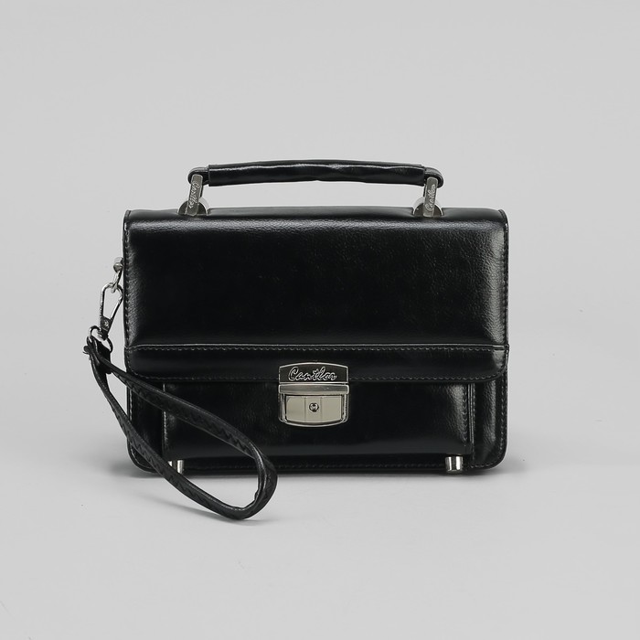 Барсетка мужская, 5 отделов, 3 наружных кармана, с ручкой, цвет чёрный