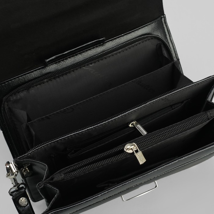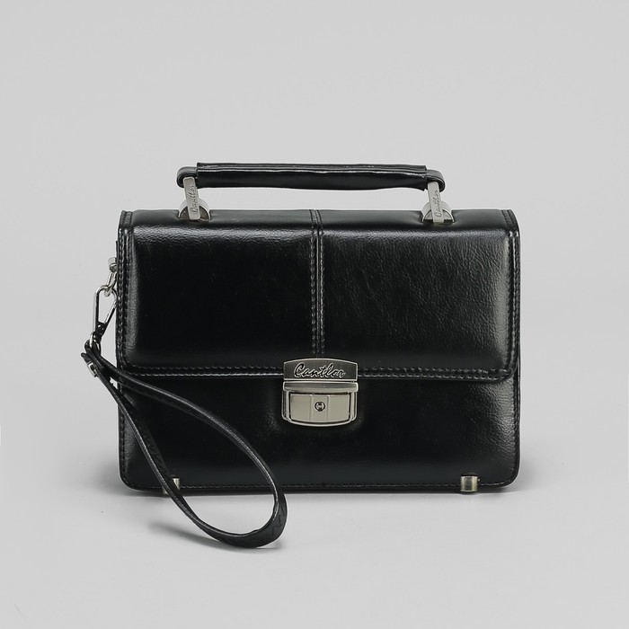 Барсетка мужская, 5 отделов, 3 наружных кармана, с ручкой, цвет чёрный