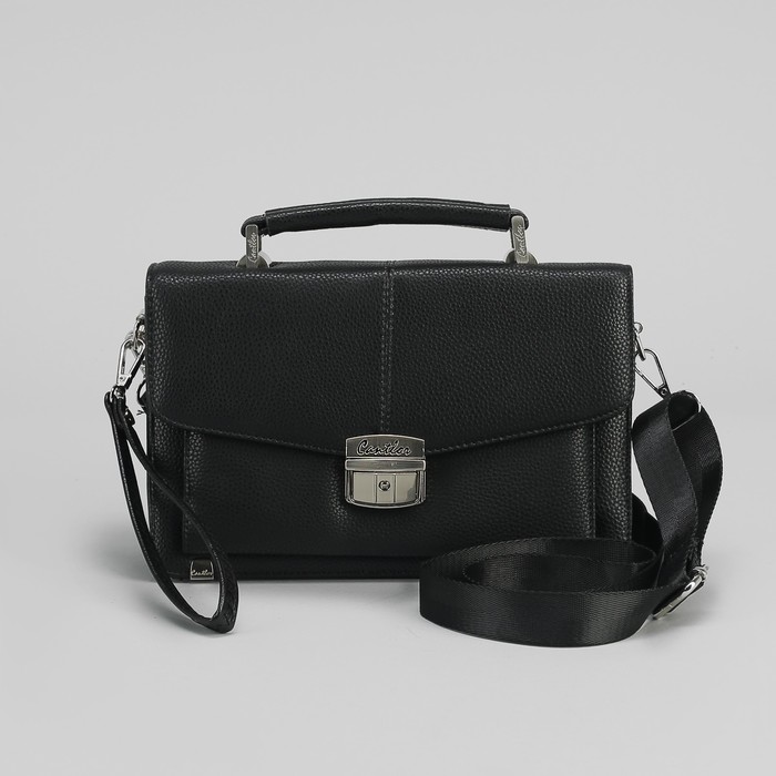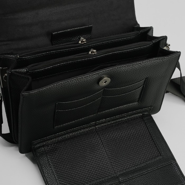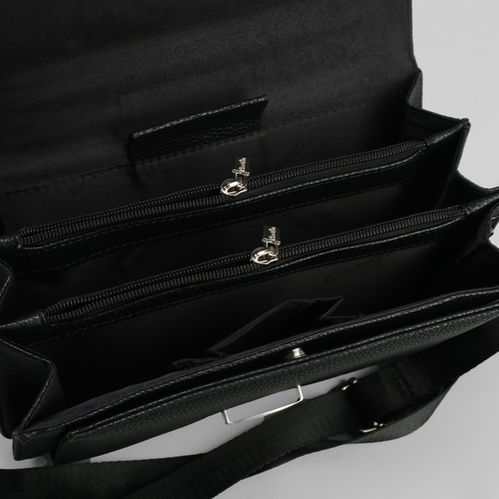 Барсетка мужская, 5 отделов, 3 наружных кармана, с ручкой, цвет чёрный