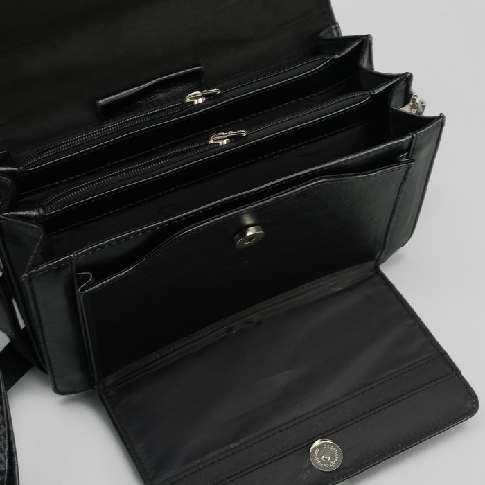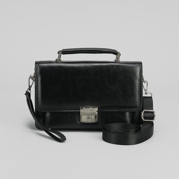 Барсетка мужская, 5 отделов, 3 наружных кармана, с ручкой, цвет чёрный