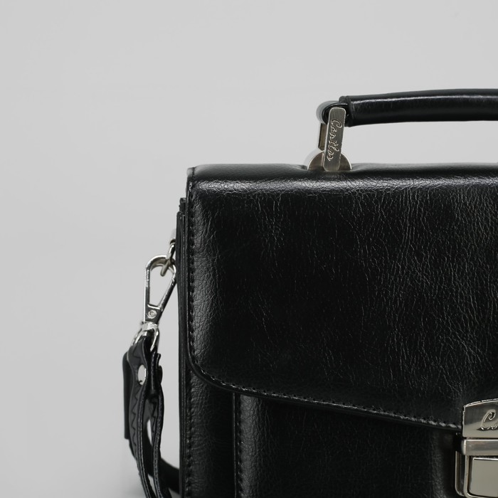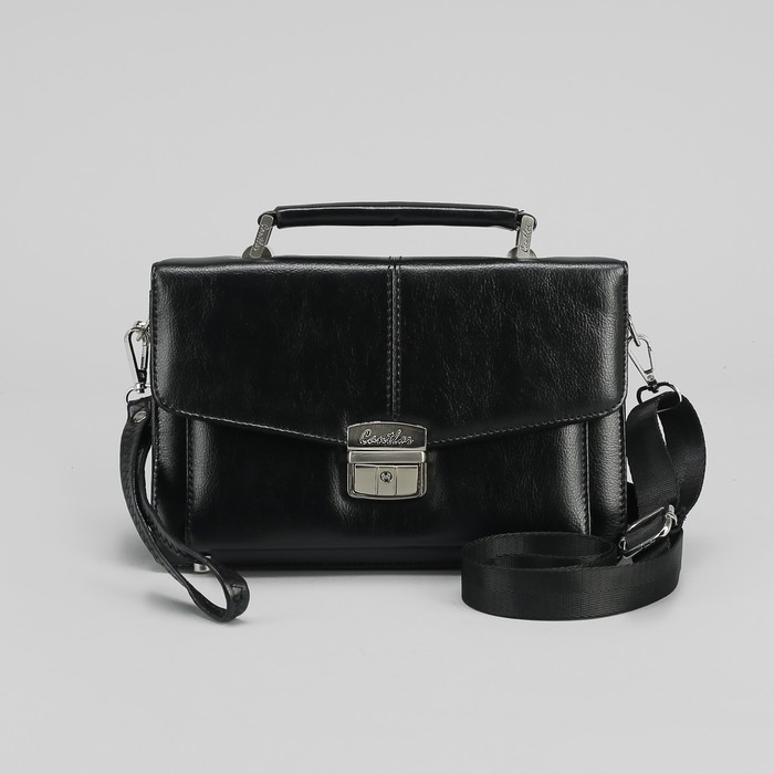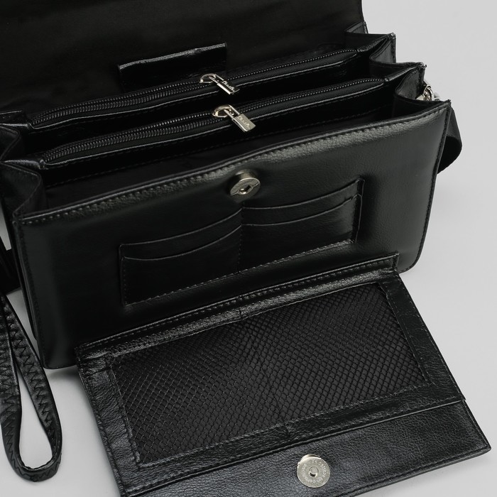 Барсетка мужская, 5 отделов, 3 наружных кармана, с ручкой, цвет чёрный
