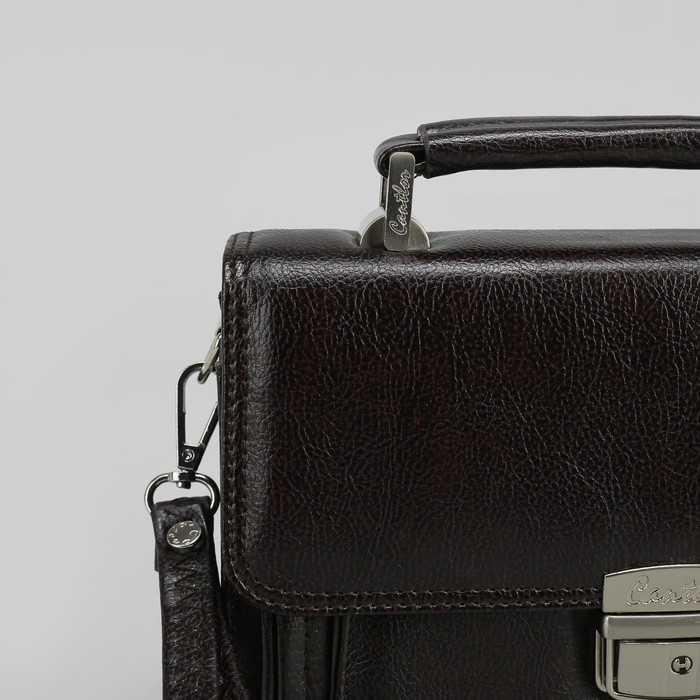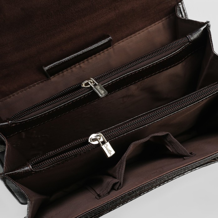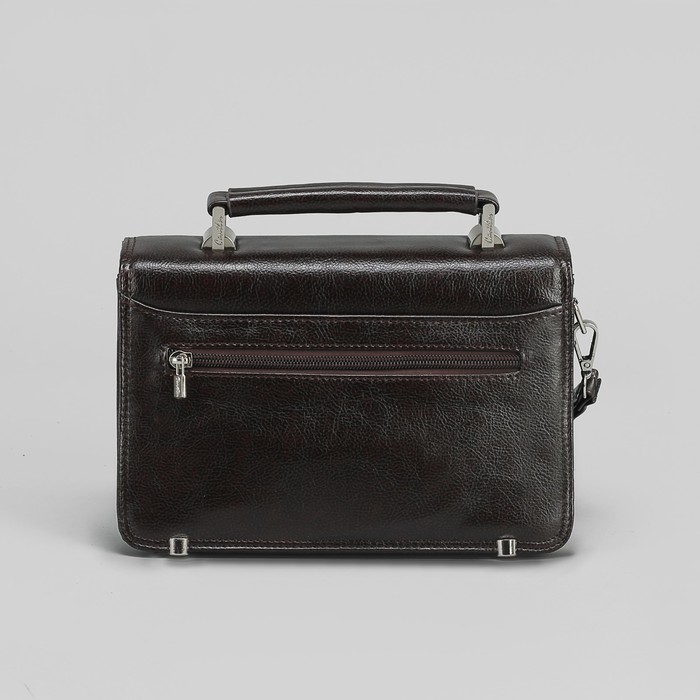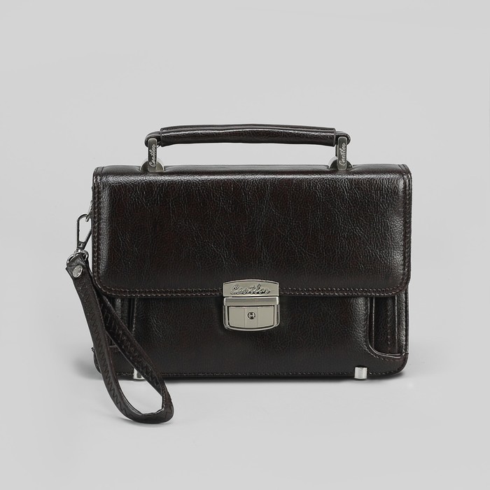 Барсетка мужская, 5 отделов, 3 наружных кармана, с ручкой, цвет коричневый