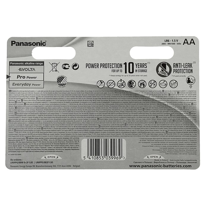 Батарейка алкалиновая Panasonic Pro Power, Цирк дю Солей, АА, LR6-8BL, 6+2, блистер, 8 шт