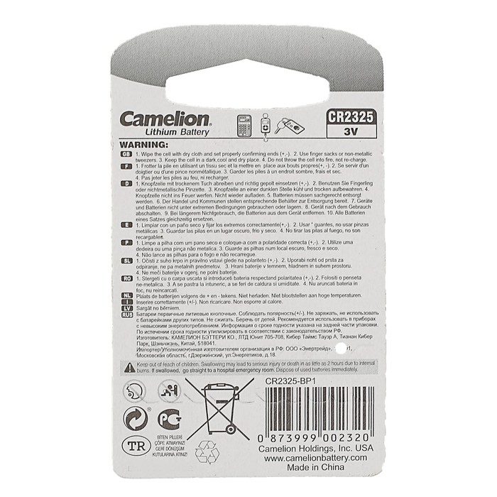 Невозможно представить себе современный мир без электроприборов. Благодаря качественным материалам и работе дизайнеров они способны сделать нашу жизнь комфортнее и порадовать глаз. Батарейка литиевая Camelion CR2325-1BL (CR2325-BP1), 3V, блистер, 1 шт. — прекрасный выбор, если вы находитесь в поиске товара, который идеально впишется в ежедневную жизнь и прослужит долго.