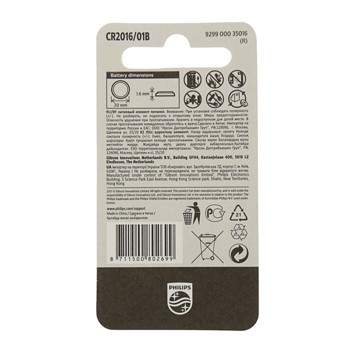 Невозможно представить себе современный мир без электроприборов. Благодаря качественным материалам и работе дизайнеров они способны сделать нашу жизнь комфортнее и порадовать глаз. Батарейка литиевая Philips, CR2016-1BL, блистер, 1 шт. — прекрасный выбор, если вы находитесь в поиске товара, который идеально впишется в ежедневную жизнь и прослужит долго.