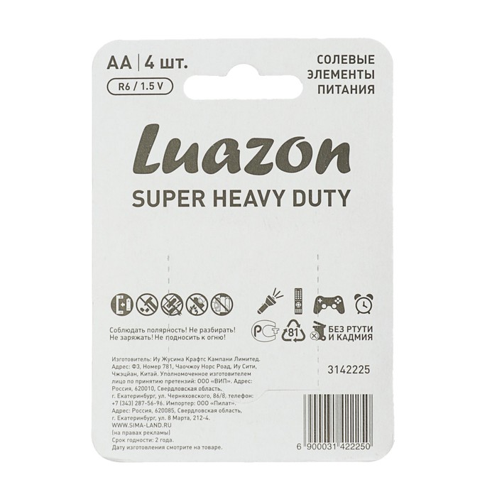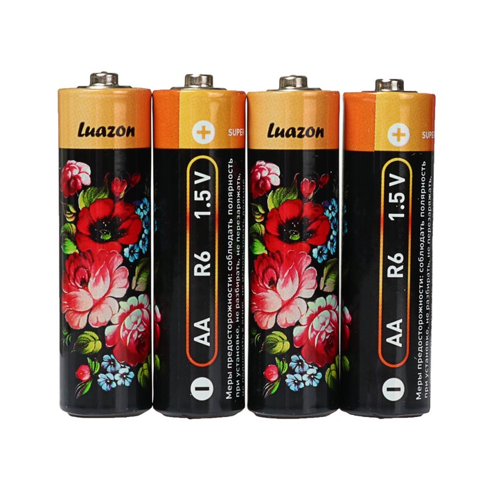 Батарейка Солевая Luazon "Жостовская роспись" АА R6, набор 4 шт в блистере