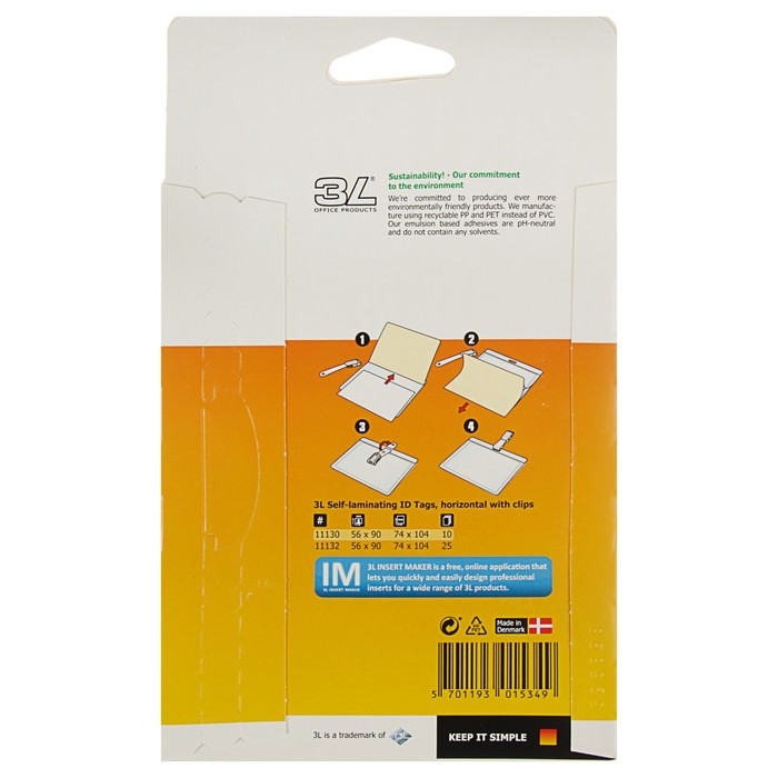 Бейдж горизонтальный самоламинирующийся 104*74 мм, 3L, комплект 10 штук, зажим 11130