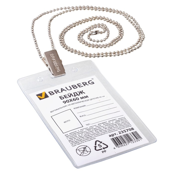 Бейдж вертикальный 90х60мм, на металлической цепочке 45см