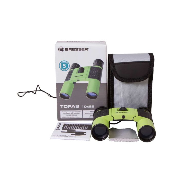 Собираетесь в турпоход или на горную прогулку, в экспедицию или на военно-полевые сборы? Бинокль Bresser Topas 10x25 Green станет важным помощником и будет полезен в любых условиях и ситуациях. А охота, рыбалка и другие развлечения с использованием прибора принесут намного больше эмоций и добычи.