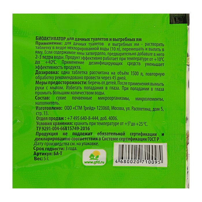 Биоактиватор для септиков, выгребных ям, дачных туалетов Счастливый дачник, таб., 5 г быстро и эффективно справляется со своей задачей. Его легко использовать, препарат хорошо устраняет запах, уничтожает бумагу, органику и жиры. Кроме того, он разлагает даже сложные отходы, которые могут не поддаваться обычным биологическим процессам.