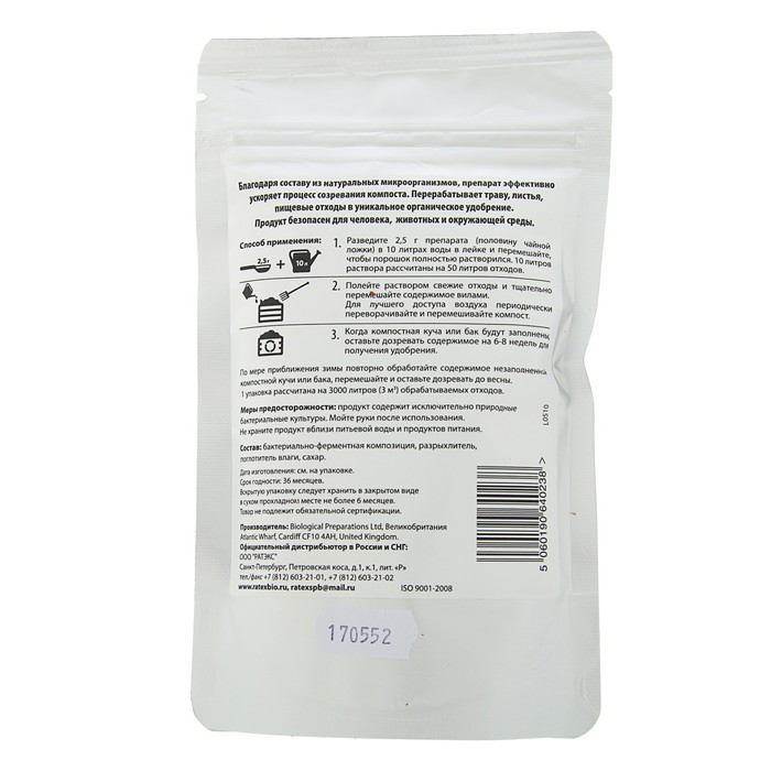 Биологический ускоритель компостирования БИОТЭЛ, 150 г быстро и эффективно справляется со своей задачей. Его легко использовать, препарат хорошо устраняет запах, уничтожает бумагу, органику и жиры. Кроме того, он разлагает даже сложные отходы, которые могут не поддаваться обычным биологическим процессам.