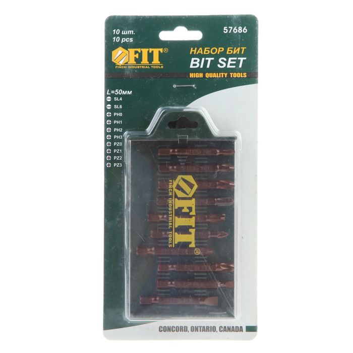 Биты FIT, набор 10 шт, сталь S2, 50 мм