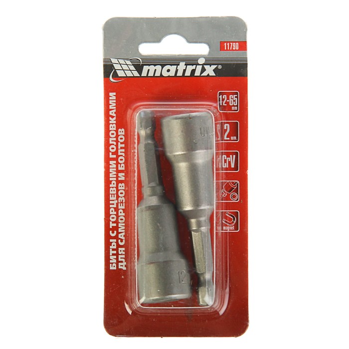 Биты с торцевыми головками MATRIX, СrV, 12 × 65 мм