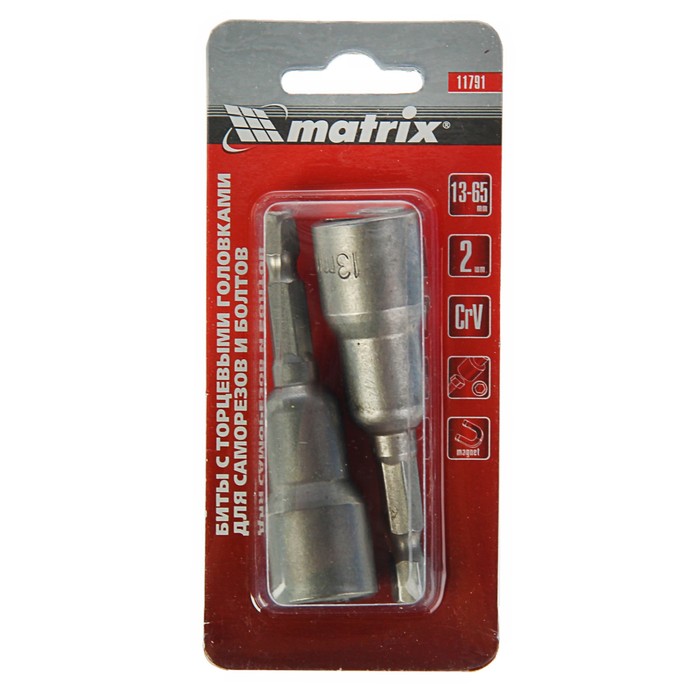 Биты с торцевыми головками MATRIX, СrV, 13 × 65 мм