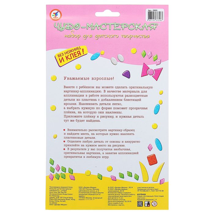 Может быть, именно такой необычный товар, как Блестящая картинка мини "Котёнок", раскроет неожиданные способности у вашего ребёнка. И даже если он не станет новым Рафаэлем, то ему, определённо, обеспечена богатая фантазия, креативное мышление и золотые руки.