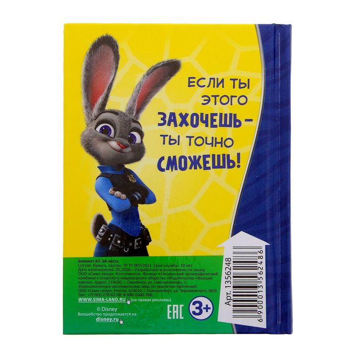 Блокнот А7 "У тебя все получится", Зверополис, 64 листа