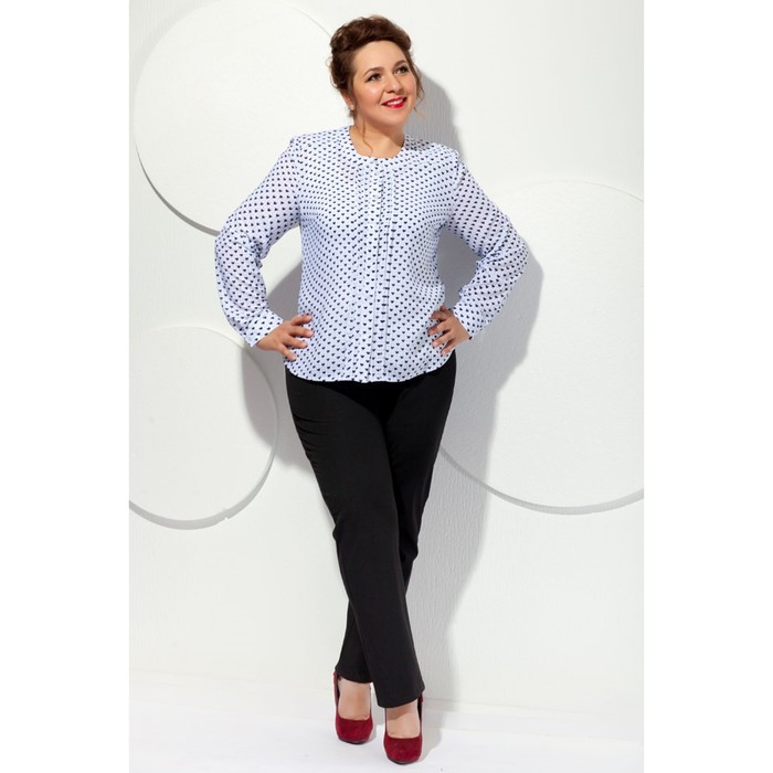 Блуза женская, размер 52, цвет молочный+синий Б-161/1 — выбор стильных людей. Вещь изготовлена из качественных и безопасных материалов, а над дизайном работала команда настоящих профессионалов.