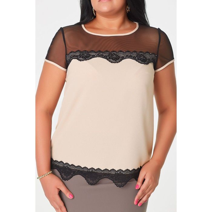 Блуза женская, размер 54, цвет бежевый+чёрный 2510-2