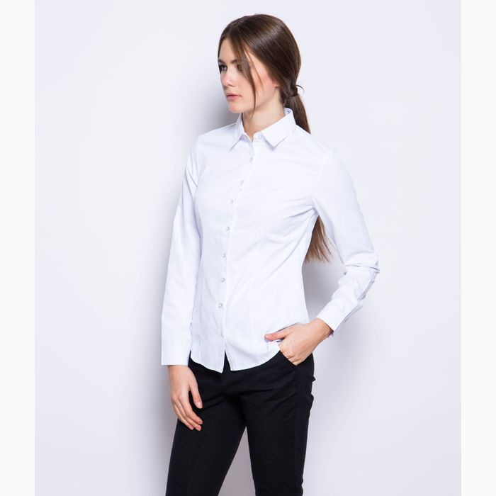 Блузка женская с длинным рукавом (1586L), размер 50, цвет белый — модель, которая отлично впишется в базовый гардероб деловой леди.