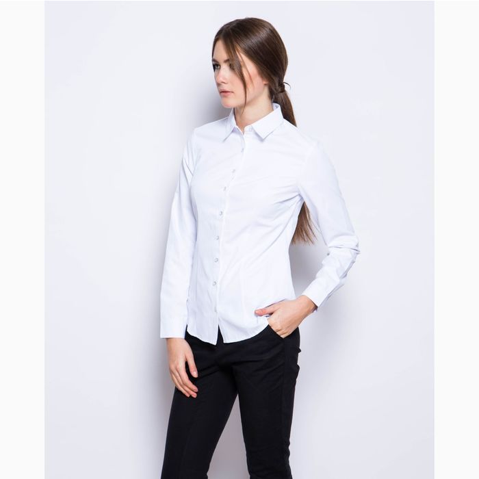 Блузка женская с длинным рукавом, размер 50, цвет белый (арт. 1586 С+) — модель, которая отлично впишется в базовый гардероб деловой леди.