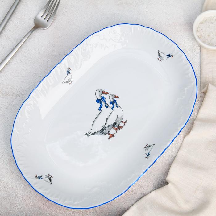 Блюдо овальное 29х20 см "Рококо. Гуси"