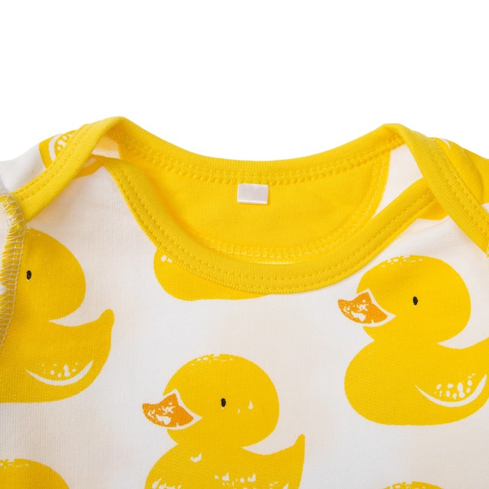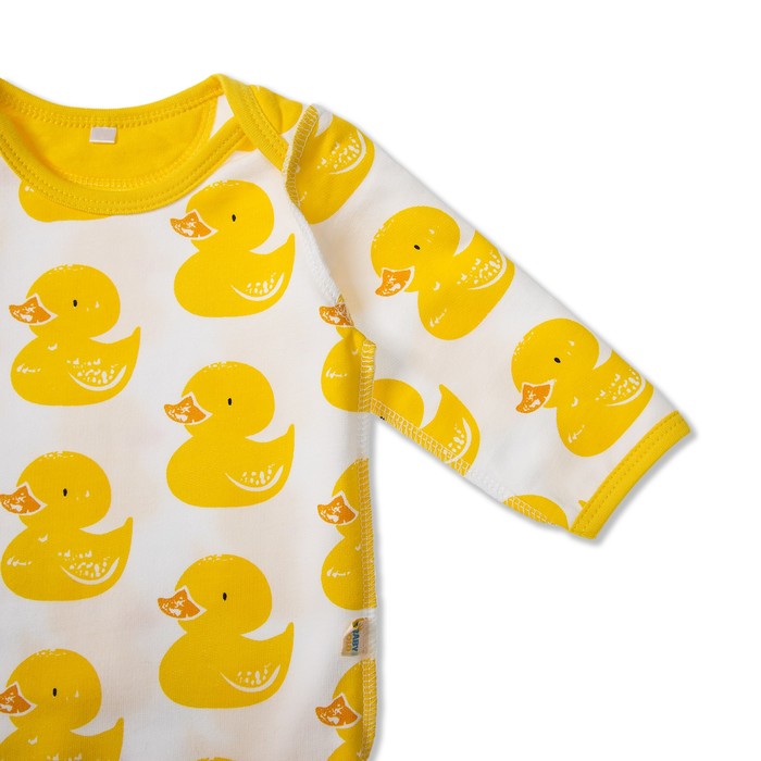 Боди детское длинный рукав, рост 74 см, цвет белый, принт жёлтые утки У-БД-001