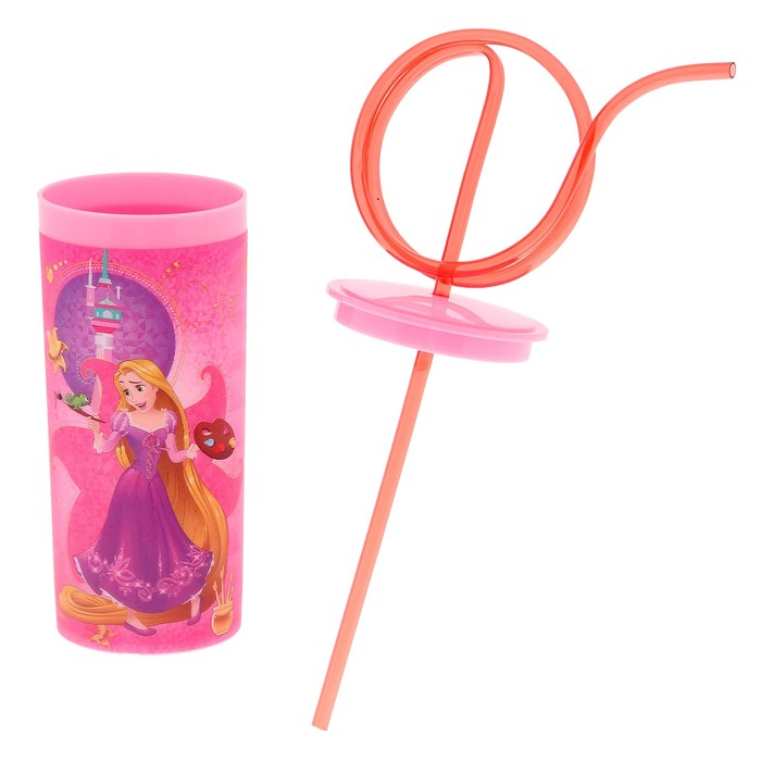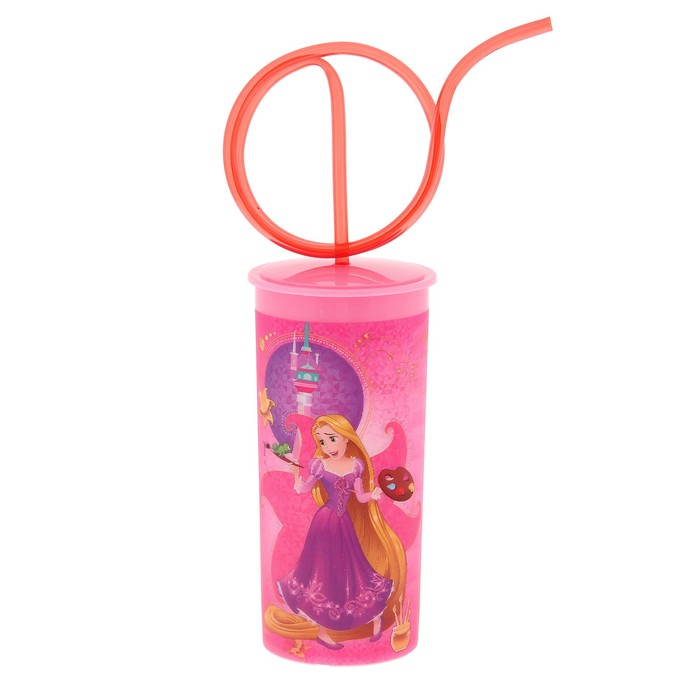 Бокал 3D 330 мл "Золушка и Рапунцель", с крышкой и витой трубочкой