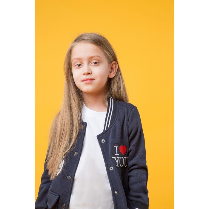 Бомбер трикотажный для девочки, рост 116 см, цвет тёмно-синий 5963