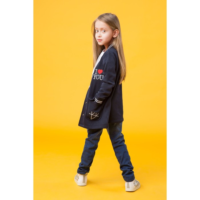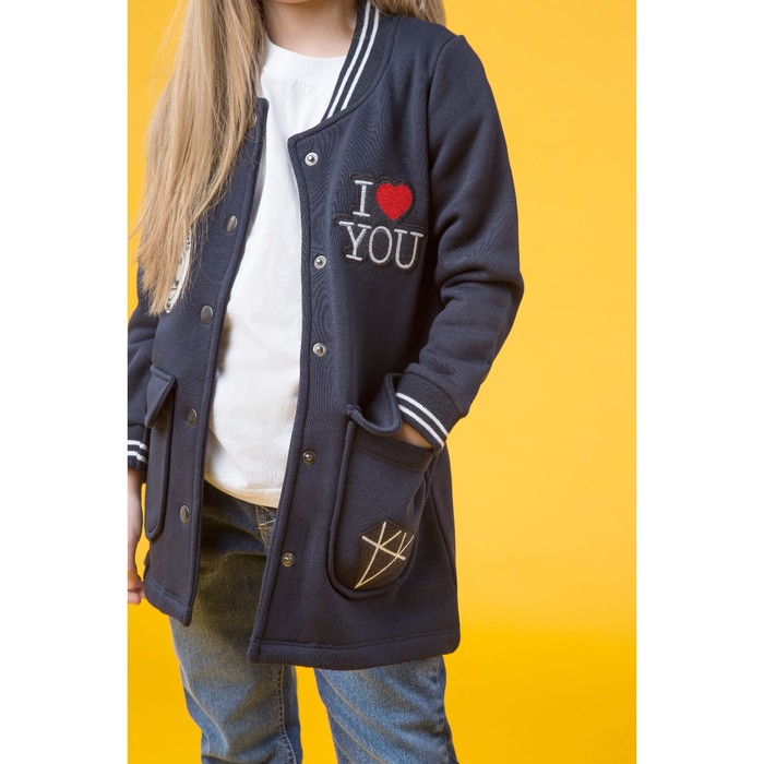 Бомбер трикотажный для девочки, рост 122 см, цвет тёмно-синий 5963