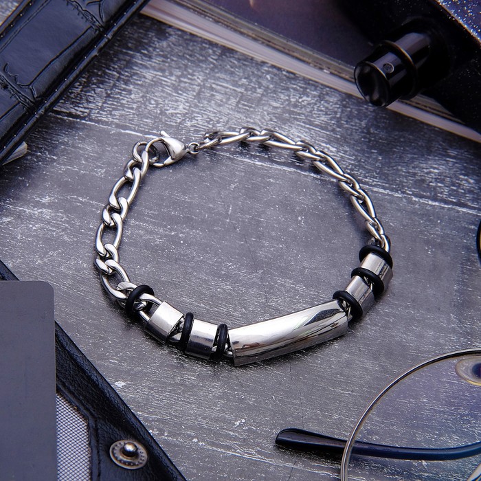 Ни один стиляга не будет выглядеть современно без искусно подобранных украшений, которые завершат его образ! Бижутерия — это современная недорогая альтернатива изделиям из золота и прочих драгоценных металлов. Браслет мужской "Брутал" цепь, цвет чёрный в серебре — это то, что добавит вам шарма!