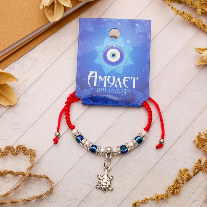 Браслет-оберег "Ряд бусин" черепашка, цвет красный