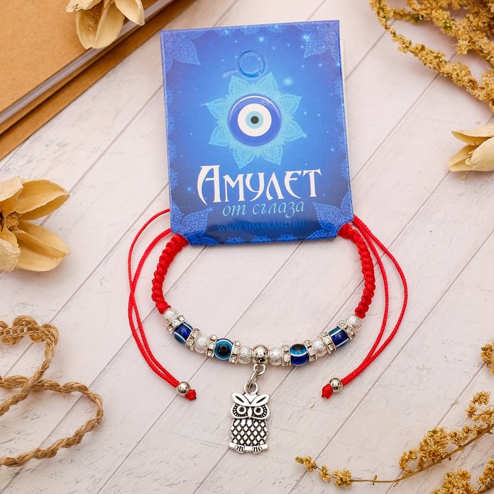Браслет-оберег "Ряд бусин" сова, цвет красный