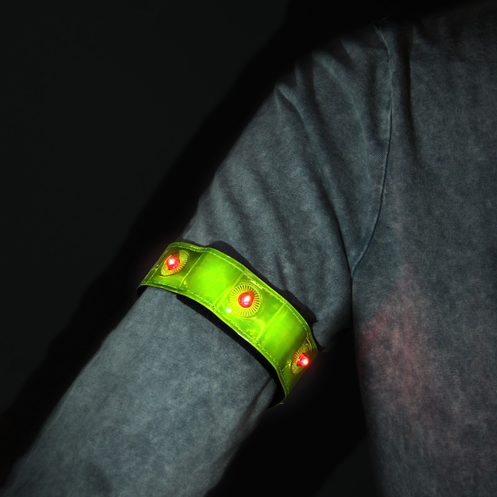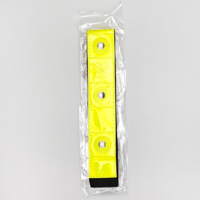 Браслет светоотражающий, на липучке, 47*3см, цвет жёлтый