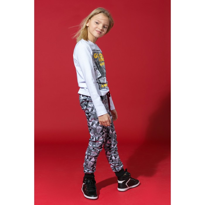 Брюки для мальчика, рост 104-110 см, цвет серый, принт треугольники 11051801/0714