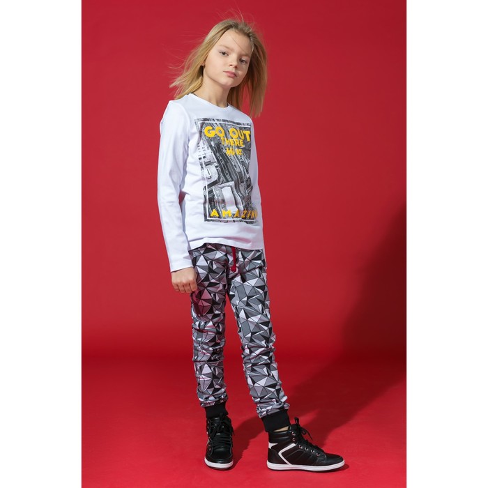 Брюки для мальчика, рост 128-134 см, цвет серый, принт треугольники 11051801/0714