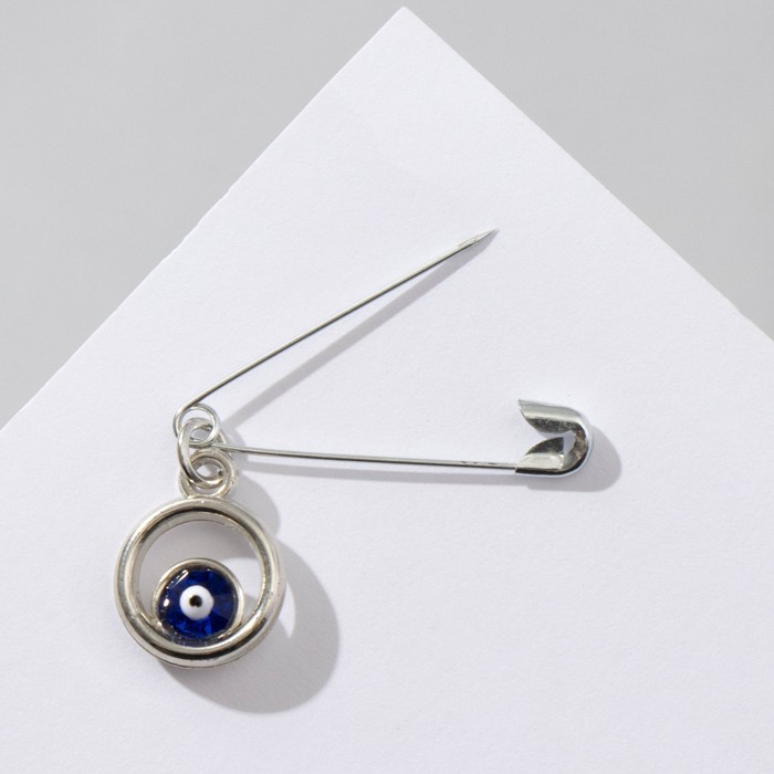 Булавка-оберег "Круг с глазиком", 2 см, цвет синий в серебре