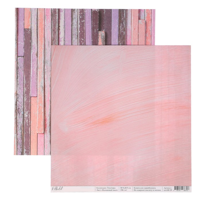 Бумага д/скрапбукинга двустор. "Текстура.Малиновый закат" 30,5х30,5 см,плотность 190гр/м2