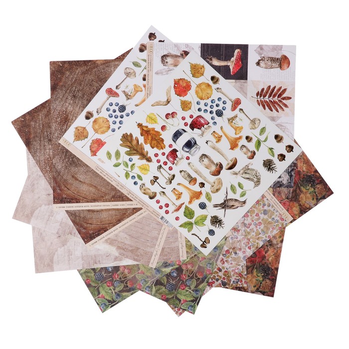 Бумага для скрапбукинга "Осенний лес" набор 7 листов, 30,5х30,5 см, 250 гр/м2