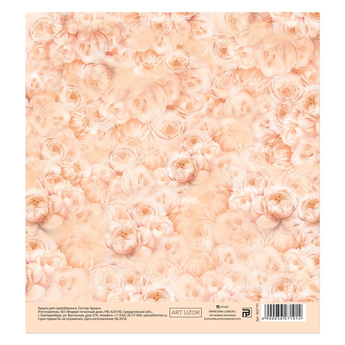 Бумага для скрапбукинга «Пионы, бежевая», 15,5 х 15,5 см, 180 г/м