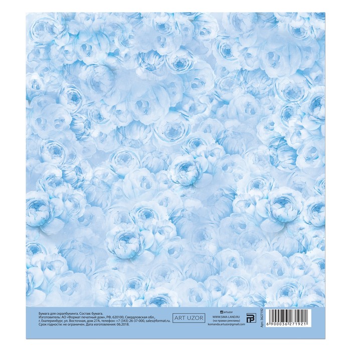 Бумага для скрапбукинга «Пионы, голубая», 15,5 х 15,5 см, 180 г/м