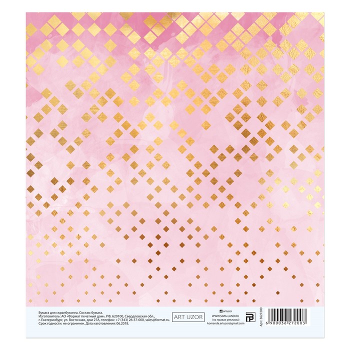 Бумага для скрапбукинга «Розовый блеск», 15,5 × 15,5 см, 180 г/м
