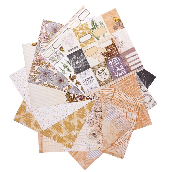 Бумага для скрапбукинга "Тайны леса" набор 12 листов, 30,5х30,5 см, 250 гр/м2