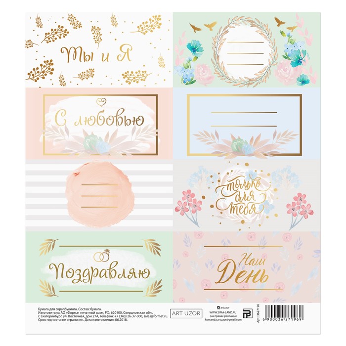 Бумага для скрапбукинга «Ты и Я», 15,5 × 15,5 см, 180 г/м
