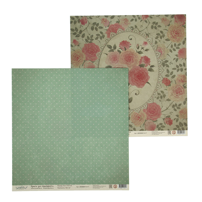 Бумага для скрапбукинга "Винтаж. Розовые бутоны и горошек" 30,5х30,5 см 190г/м2