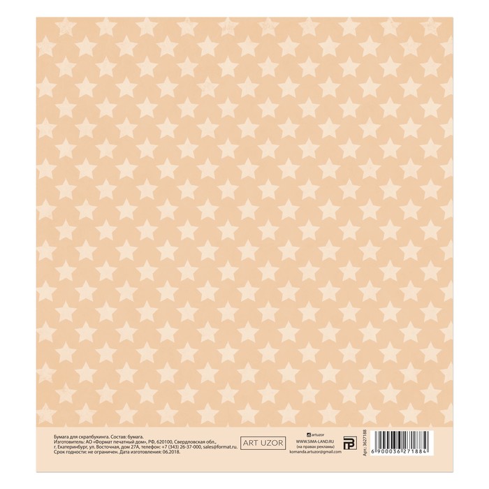 Бумага для скрапбукинга «Звёздочки, бежевая», 15,5 х 15,5 см, 180 г/м